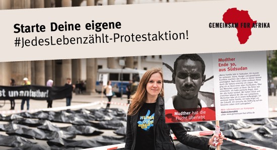 Im Jahr 2016 waren wir am 25. Mai – dem Internationalen Afrika-Tag – erneut mit einer aufmerksamkeitsstarken Protestaktion in Berlin, Köln und Dr...