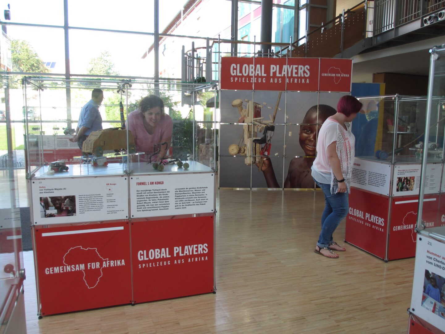 Roggenburg, 31.08.2016 – Die Ausstellung „Global Players – Spielzeug aus Afrika“ erzählt Geschichten aus dem oft schwierigen Alltag afrikanischer Kinder, der dennoch von Fantasie, Lebensfreude und Improvisationstalent zeugt. Mit der Ausstellung „Global Players – Spielzeug aus Afrika“ zeigt das Bündnis GEMEINSAM MIT AFRIKA zusammen mit dem Zentrum für Familie, Umwelt und Kultur, wie aus Müll kleine Kunstwerke werden. Flugzeuge aus alten Saftpackungen, Klapperschlangen aus Kronkorken, Fahrzeuge aus Draht – das sind nur einige Beispiele der Spielsachen, die afrikanische Kinder aus Müll basteln. In der Ausstellung „Global Players – Spielzeug aus Afrika“ können sich die Besucher vom 31. August bis 29. September im Zentrum für Familie, Umwelt und Kultur am Kloster Roggenburg von der Kreativität und dem Talent dieser Kinder persönlich überzeugen. Alle Exponate der Ausstellung von GEMEINSAM MIT AFRIKA wurden von der ARD-Auslandskorrespondentin Birgit Virnich während ihrer redaktionellen Reisen durch Afrika gesammelt. Diese führten sie zum Beispiel in die Slums von Nairobi und Lagos oder zu den Straßensperren der Kindersoldaten in der Demokratischen Republik Kongo. Jedes dieser Spielzeuge erzählt eine ganz eigene Geschichte und offenbart die Wünsche und Träume der Kinder, ihren oft schlimmen Lebensumständen zu entkommen. Mit dem selbstgebastelten Flugzeug möchten sie der Armut entfliegen, die Autos und Laster aus Draht zeigen den Wunsch, irgendwann in die Fußstapfen des Vaters zu treten und Mechaniker zu werden. Jedes einzelne Exponat der Ausstellung „Global Players – Spielzeug aus Afrika“ ist ein Beweis für die Lebensfreude, das Potenzial und die Hoffnungen der jüngsten Generation unseres Nachbarkontinents. Die Ausstellung „Global Players – Spielzeug aus Afrika“ ist vom 31. August bis zum 29. September im Foyer des Zentrum für Familie, Umwelt und Kultur während der Öffnungszeiten zu besichtigen (Montag bis Freitag von 8 Uhr bis 19 Uhr, Samstag von 8 bis 17 Uhr und Sonntag 8 bis 14 Uhr ). Der Eintritt ist frei. Die Ausstellung wird gefördert durch das Bayerische Staatsministerium für Umwelt und Verbraucherschutz. Pressekontakt: Ulrike Scheurer GEMEINSAM MIT AFRIKA Tel. 030 / 2977 24 31 E-Mail: scheurer@gemeinsam-fuer-afrika.de Pressekontakt Zentrum für Familie, Umwelt und Kultur: Dörte Fischer Zentrum für Familie, Umwelt und Kultur Telefon: (0 73 00) 96 11-540 E-Mail: doerte.fischer@kloster-roggenburg.de Ausstellungsort: Zentrum für Familie, Umwelt und Kultur Klosterstraße 3 89297 Roggenburg www.kloster-roggenburg.de