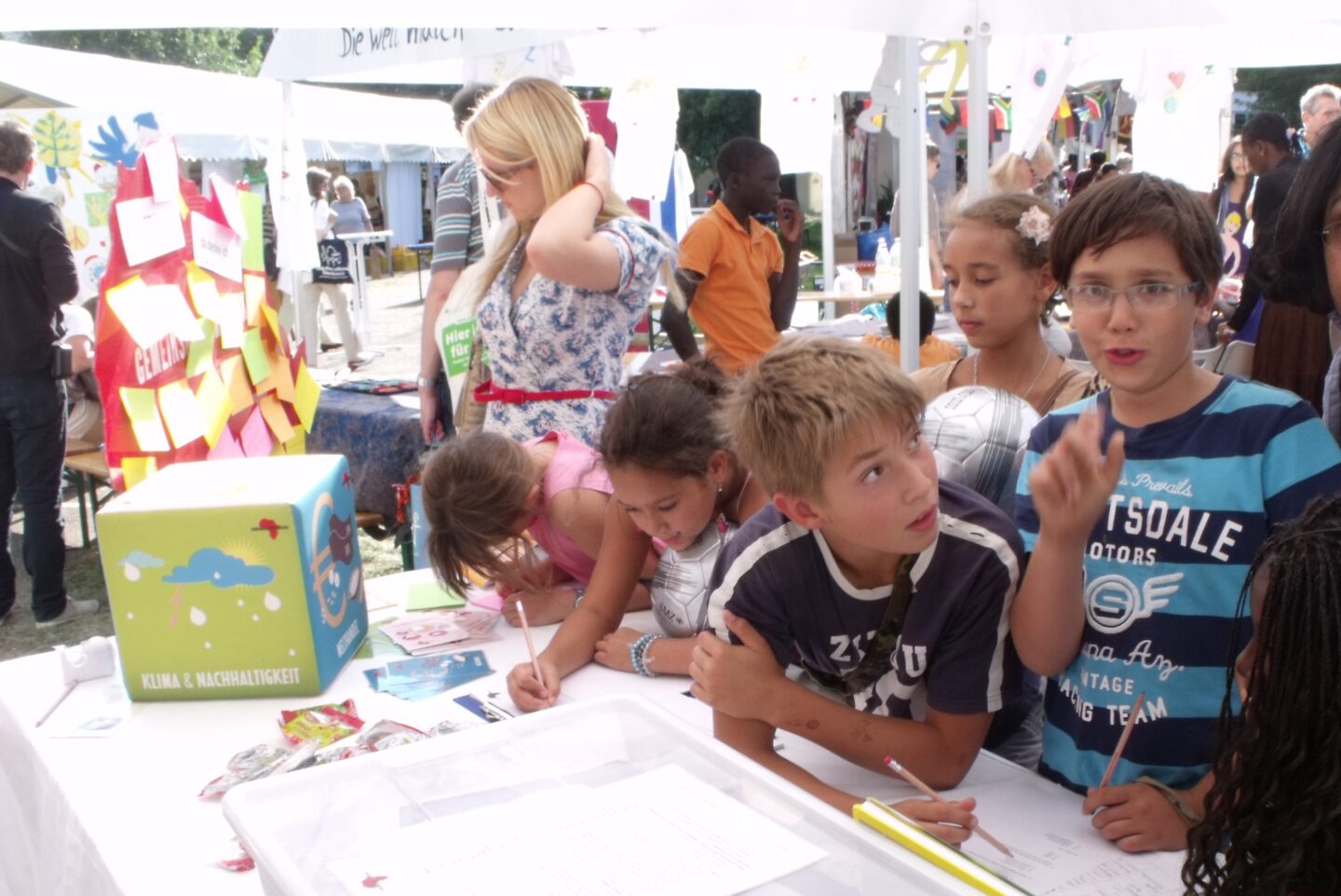 Bei angenehm sommerlichen Temperaturen genossen am gestrigen Sonntag viele Besucher/-innen ihre freie Zeit beim Tag der offenen Tür im Berliner Regierungsviertel. Auch das Bundesministerium für wirtschaftliche Zusammenarbeit und Entwicklung lud interessierte Bürgerinnen und Bürger zum Austausch mit Vertreter/-innen aus über 40 Kooperationsländern und zahlreichen Nichtregierungsorganisationen auf sein Gelände ein. Schulen – GEMEINSAM MIT AFRIKA präsentierte sich auf dem Fest mit einem umfangreichen Angebot für Jung und Alt: Mit viel Interesse und Neugier blätterten die Besucher/-innen in unseren Unterrichtsmaterialien, puzzelten oder testeten mit Begeisterung ihr Wissen zu Afrika – mit so manchem Aha-Erlebnis! „Afrika – da denke ich an…“ lautete in diesem Jahr zudem unsere Umfrage, über die sich sowohl Kinder als auch Erwachsene Gedanken machten und diesen auf unserem großen Afrika-Kontinent Ausdruck verliehen. Für unsere große Sommertour mit der Initiative „Zukunftsentwickler“ des BMZ war der Tag der offenen Tür die vorerst letzte Station auf der Reise durch die Republik. Mit einem vielfältigen Bühnenprogramm, diversen Mitmachaktionen und allerhand Informationen rund um die Entwicklungszusammenarbeit wurde der Abschluss daher gebührend gefeiert. Auf flickr.com finden Sie Bilder zum Auftritt der Schulkampagne beim Tag der offenen Tür im BMZ.