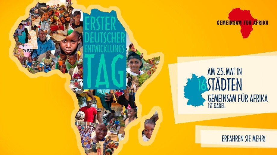 Mit dem Kontinent der Potentiale waren wir bei den Veranstaltungen in 16 Städten zum Ersten Deutschen Entwicklungstag am 25. Mai 2013 dabei : In 16 Städten wartete ein fünf Meter hoher Afrika-Kontinent auf die Besucher/-innen. Auf diesem stellten wir die Projektarbeit der Organisationen von GEMEINSAM MIT AFRIKA vor. An unserem Aktionsstand boten wir einen Blick hinter die Kulissen der Projekte und Infos aus erster Hand von den Vertreter/-innen unserer Organisationen. In einer Bastelecke konnten die großen und kleinen Besucher/-innen eigene Beiträge kreieren, die sie dann mit einem Scherenwagen an unserem großen Afrikakontinent befestigen konnten. Impressionen dazu finden Sie hier.