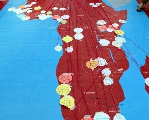 Lernkoffer: Vernetzungsspiel Afrika-Europa Shop· Grundschule·Lernkoffer·Sekundarstufe I und II·Unsere Afrika-Spiele, Poster und Flyer Informationen zur Ausleihe Kosten: kostenfrei Transportkosten: wir übernehmen das Porto Minimale Ausleihdauer: 5 Tage Maximale Ausleihdauer: 14 Tage Spätestens zurückschicken nach: 44 Days Wissen Sie wo der Kakao für Ihre Schokolade herkommt? Oder die Bestandteile Ihres Handys? Gehen Sie mit dem Vernetzungsspiel auf Spurensuche. Ausleihzeitraum Gesamt: € () Lernkoffer: Vernetzungsspiel Afrika-Europa Menge Zum Bestellen anmelden Artikelnummer: 1003 Kategorien: Grundschule, Lernkoffer, Sekundarstufe I und II, Unsere Afrika-Spiele, Poster und Flyer Beschreibung Informationen zur Kofferleihe Wie leihe ich einen Koffer aus? Beschreibung Finden Sie heraus, wie eng Ihre Lebenswelt mit der des afrikanischen Kontinents verbunden ist. Vielen Menschen in Deutschland ist nicht bewusst, wie eng ihre Lebenswelt mit der vieler afrikanischer Länder verbunden ist. Das Vernetzungsspiel veranschaulicht diese Verbindung auf spielerische Art und Weise. Das Spiel wird auf einer großen Plane von 6 mal 3 Metern gespielt, also ideal für den Einsatz auf Messen, Großveranstaltungen, „Afrika-Events“ und im Bereich entwicklungspolitischer Bildung. Ziel ist es, so viele Verbindungen zu Afrika wie möglich herzustellen. Das Vernetzungsspiel Afrika-Europa eignet sich auch wunderbar als Einstieg für einen Projekttag oder eine Projektwoche, weil es Schüler*innen zeigt, wie eng ihre Lebenswelt mit dem afrikanischen Kontinent vernetzt ist. Gehen Sie mit unserem Vernetzungsspiel auf Spurensuche zwischen Afrika und Europa! Sie können das Vernetzungsspiel kostenlos für zwei Wochen ausleihen. Danach müssen Sie das Spiel an GEMEINSAM MIT AFRIKA zurückschicken. Hier können Sie sich den Leitfaden (PDF) des Vernetzungsspiels anschauen, bevor Sie es für Ihren Unterricht bestellen. Bestellen geht ganz einfach, indem Sie unten auf „Kostenlos bestellen“ klicken. Lesen Sie hier einen ersten Erfahrungsbericht vom KENAKO-Festival 2018, bei dem am Ende mehr als 600 Vernetzer*innen beherzt zu Stift und Zettel griffen, um ihre persönlichen Verbindungen auf die Plane einzutragen – die Vernetzungs-Plane als Publikumsmagnet. Informationen zur KofferleiheDie Koffer bzw. die Spiele werden nur innerhalb Deutschlands versendet. Die Koffer bzw. Spiele können nur an Schulen oder Lehrinstitutionen versendet werden. Die Pakete werden ca. eine Woche vor Ihrem Wunschtermin mit DHL verschickt. Wir übernehmen einmalig alle Portokosten! Wie leihe ich einen Koffer aus?Die Lernkoffer bzw. Spiele können kostenfrei für zwei Wochen von Schulen oder anderen pädagogischen Einrichtungen ausgeliehen werden. Zeitraum auswählen. Rechts finden Sie einen Kalender, der die Verfügbarkeit des Lernkoffers anzeigt. Wählen Sie hier den Zeitraum, in dem Sie den Koffer haben möchten. Info: Wir werden den Koffer ca. eine Woche vor Ihrem Wunschtermin mit DHL verschicken. Bestellformular ausfüllen. Wir verschicken den Lernkoffer nur an offizielle Einrichtungen. Falls Sie den Koffer an Ihre Privat-Adresse geschickt haben möchten (z. B. wegen Schließzeiten der Schule), vermerken Sie dies bitte ganz unten im Kommentar. Bestellung abschicken. Sie bekommen eine Bestätigung per E-Mail. Zusätzlich können Sie den Status des Lernkoffers unter Ihrem Konto und "Meine Bestellungen" einsehen. Der Koffer wird verschickt. Wenn wir den Koffer losschicken, bekommen Sie nochmal eine E-Mail mit einer DHL-Tracking-Nummer. Den Lernkoffer einsetzen. Freuen Sie sich mit Ihren Schüler*innen an den Materialien des Lernkoffers. Zurücksenden. Im Koffer finden Sie einen Umschlag mit einer Checkliste (bitte stellen Sie sicher, dass Sie alle Gegenstände und CDs/DVDs wieder einpacken) und einen DHL-Retoureschein. Bringen Sie diesen außen an das Paket an und liefern Sie ihn im nächsten DHL-Shop ein. Bitte lassen Sie sich einen Beleg geben (falls das Paket verloren geht). Abschluss. Ist der Koffer vollständig bei uns angekommen, ändert sich auch der Status in Ihrem Konto.