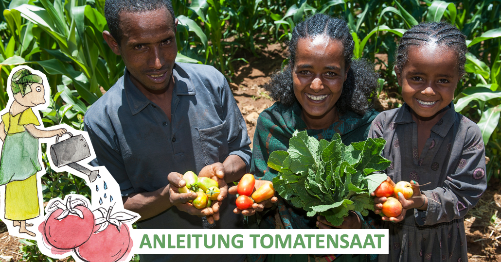 Vorbereitung für die AussaatDer richtige Zeitpunkt der Aussaat hängt von den Temperaturen des jeweiligen Jahres ab. Wird zu früh mit der Aussaat begonnen, werden Frostschäden riskiert – wird zu spät begonnen, kann es sein, dass die Tomaten nicht früh genug reif werden. Generell sind die Monate März und April geeignet.Die Aussaat sollte in einer warmen (20-25°C) Umgebung stattfinden. Dabei sollten die Pflanzen genügend Sonnenlicht bekommen, damit sie nach oben wachsen können. Die eigene Wohnung, insbesondere das Fensterbrett, ist zumeist am besten geeignet.In Töpfen oder Multitopfplatten mit Abzugslöchern sowie gefüllt mit Aussaaterde wird das Saatgut ausgesät.Die AussaatBefüllen Sie Ihren Behälter mit 4-5 cm Anzuchtsubstrat (Erde, die zum Aussäen oder zur Stecklings-Anzucht verwendet wird). Trennen Sie den Kreis, der die Tomatensamen enthält, aus Ihrem Kärtchen. Legen Sie den Kreis mit der Schlitzstanzung nach oben zeigend in Ihren befüllten Behälter und bedecke ihn mit etwa 1 cm Substrat. Jetzt sollte darauf geachtet werden, dass das Substrat immer feucht gehalten wird – am besten während der nächsten Tage mehrmals am Tag. Aber Achtung: Es darf nie so nass werden, dass es tropft! Nach 10 bis 14 Tagen werden die ersten Sämlinge zu sehen sein.Selber pflanzen Schnee von gestern?Na klar, der Bärenanteil der Menschen in Deutschland bekommt Tomaten oder andere Obst- und Gemüsefrüchte heutzutage primär aus dem Supermarkt. Dennoch gibt es auch hierzulande einen geringen Anteil an Selbstversorger*innen, das eigene Anpflanzen ist in den meisten Haushalten jedoch nur ein Hobby für zwischendurch. In anderen Weltregionen hingegen ist der Eigenanbau überlebenswichtig. Insbesondere in Regionen Afrikas südlich der Sahara ist der eigene Anbau von Lebensmitteln ein unentbehrlicher Teil der eigenen Ernährungssicherung. Mehr als 50 Prozent der Agrarproduktion dient auf dem afrikanischen Kontinent als sogenannte Subsistenzproduktion, also zur Selbstversorgung. Im Vergleich, in Deutschland sind es lediglich 11 Prozent.Menschen in Projektgebieten sind auf neue Methoden angewiesen Aufgrund der ohnehin schon erschwerten Anbaubedingungen vor Ort und den zunehmenden klimatischen Veränderungen durch den Klimawandel, die langanhaltende Dürren und damit einhergehende Hungersnöte begünstigen, sind viele Menschen in den Projektgebieten von GEMEINSAM MIT AFRIKA darauf angewiesen, neue Methoden bei der landwirtschaftlichen Nahrungsmittelproduktion anzuwenden. Um eine langfristige Ernährungssicherheit zu erreichen, unterstützen die Mitgliedsorganisationen von GEMEINSAM MIT AFRIKA die Menschen vor Ort beispielsweise durch Schul- und Fortbildung im Bereich von land- und forstwirtschaftlichen Themen. Zudem erhalten die Menschen in den betroffenen Regionen Saatgut und Setzlinge, die den klimatischen Bedingungen angepasst sind. Der Aufbau von Bewässerungsanlagen und Brunnen sorgt für eine ausreichende Versorgung der Pflanzen während der Anbauzeit. Und auch die richtige Lagerung der Ernte spielt eine wichtige Rolle. Um Verluste zu vermeiden, werden spezielle Speicher angefertigt, um z.B. Getreidesorten länger haltbar zu machen. Es geht darum, die langfristige Projektarbeit auszubauen, um den Hunger dauerhaft zu bekämpfen. Um dieses Ziel zu erreichen, sind unsere Mitgliedsorganisationen tagtäglich im Einsatz.Sie können dazu beitragen, Hunger nachhaltig zu bekämpfen! Unterstützen Sie unsere Mitgliedsorganisationen.Ja, ich möchte unterstüzen!