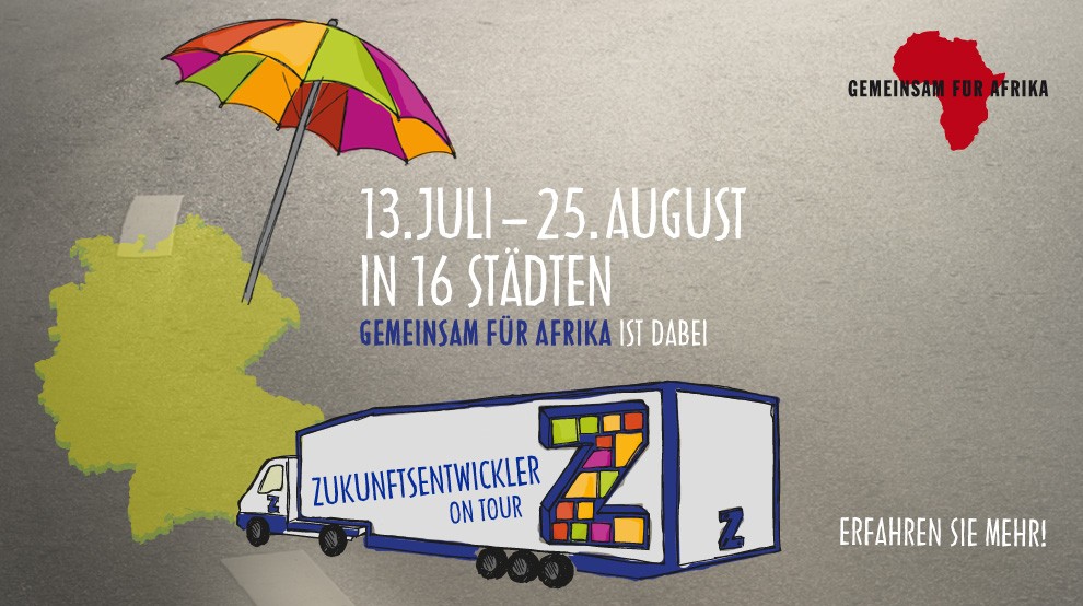 Wir blicken zurück auf ein spannendes und ereignisreiches Jahr und möchten uns ganz herzlich für Ihr Interesse an der Arbeit von GEMEINSAM MIT AFRIKA und Ihre Unterstützung bedanken! Im Jahr 2013 stand unsere Kampagnenarbeit unter dem Motto "Miteinander.Fair.Gerecht!", angelehnt an das Millenniumentwicklungsziel 8: Weltweite Partnerschaften. Der Fokus unserer Arbeit lag dabei auf einem der größten Potentiale des afrikanischen Kontinents: seiner Jugend. Fast die Hälfte der Bevölkerung ist jünger als 25 Jahre. Mit ihren Talenten, ihrer Energie und Dynamik sind diese jungen Menschen die Hoffnungsträger des Kontinents und stellen gleichzeitig ihre Gesellschaften vor große Herausforderungen. Denn Afrikas Jugend braucht Unterstützung, Rückhalt und Schutz, um ihren Platz in der Gesellschaft zu finden. Sie hat das Recht auf faire Chancen und ein gerechtes Umfeld, um ihre eigene Zukunft und die ihres Kontinents positiv und nachhaltig mitgestalten zu können. Der Jugend Afrikas faire Chancen zu bieten, ist eine zentrale Aufgabe und Herausforderung für die internationale Gemeinschaft. Sie bedeutet Partnerschaft statt Konkurrenz, gegenseitige Unterstützung statt Ausbeutung und Gerechtigkeit statt Benachteiligung. Wenn wir auf dieser Basis zusammenarbeiten und Partner werden, können wir bestehende Ungerechtigkeiten abbauen. Deshalb unsere Forderung: Miteinander. Fair. Gerecht! l Für Sie haben wir die Höhepunkte des Kampagnenjahrs 2013 zusammengefasst: Straßenaktion am 25. Mai: Kontinent der Potentiale In diesem Jahr waren wir am 25. Mai, dem Internationalen Afrika-Tag, bundesweit in 16 Städten aktiv! Unter dem Motto "Miteinander. Fair. Gerecht!" präsentierten wir an einem riesigen Afrikakontinent anschaulich die Arbeit und Anliegen der Organisationen von GEMEINSAM MIT AFRIKA. Besucherinnen und Besucher konnten einen Blick hinter die Kulissen der Projekte werfen und erhielten weitere interessante Informationen. Gleichzeitig luden wir dazu ein, im Bastelzelt einen persönlichen Beitrag zum Thema Afrika zu gestalten und auf dem Afrikakontinent zu platzieren. Dafür ging es mit einem Scherenwagen hoch hinaus! Hier finden Sie Impressionen aus den einzelnen Städten. GEMEINSAM MIT AFRIKA auf Sommertour Im Sommer 2013 war GEMEINSAM MIT AFRIKA zum ersten Mal auf großer Deutschlandtour und präsentierte Entwicklungspolitik und Globales Lernen zum Anfassen. Neben spannenden Mitmachangeboten - wie dem Kleinbauernspiel - in dem sich die Spieler gegen Rohstoffspekulanten und Landräuber durchsetzen und neue Anbaumethoden entwickeln müssen, bot das Afrika-Quiz Kindern und Erwachsenen die Gelegenheit, das eigene Wissen zu testen. Fairer Kaffee und selbstgemachte Limonade sorgten für das leibliche Wohl. Die letzte Station der Tour war am Tag der offenen Tür im Bundesministerium für wirtschaftliche Zusammenarbeit und Entwicklung (BMZ). Eindrücke dazu finden Sie hier. Wolfgang Niedecken in der DR Kongo Wolfgang Niedecken, der langjährige Botschafter von GEMEINSAM MIT AFRIKA, reiste in diesem Jahr mit uns in die DR Kongo. Dort besuchte er Projekte unserer Mitgliedsorganisationen Welthungerhilfe und World Vision. Seine ganz persönlichen Erlebnisse und Eindrücke schildert er in seinem Reisetagebuch. "Reisen Sie durch Afrika" mit unserer Projektlandkarte In tausenden Projekten in ganz Afrika fördern die Organisationen, die sich zu GEMEINSAM MIT AFRIKA zusammengeschlossen haben, eigenständige lokale Entwicklung. Seit diesem Jahr können Sie auf unserer Projektlandkarte "durch Afrika reisen" und sich anhand von Beispielprojekten über die Arbeit unserer Organisationen informieren. Hier finden Sie außerdem interessante Fakten zu den Ländern Afrikas. Wir wünschen Ihnen eine gute Reise! Hier geht es zur Projektlandkarte. Schulen - GEMEINSAM MIT AFRIKA Mit über 3.000 engagierten Schülerinnen und Schülern aus ganz Deutschland beteiligten sich in den Monaten April bis Juli 2013 mehr Kinder und Jugendliche denn je am jährlichen Aktionswettbewerb von Schulen – GEMEINSAM MIT AFRIKA. Sie waren dem Aufruf von Sängerin und Schulkampagnenbotschafterin Ivy Quainoo gefolgt und setzen sich in zahlreichen kreativen Projekten und Aktionen unter dem Motto „Miteinander. Fair. Gerecht!“ mit Partnerschaft, sozialer Gerechtigkeit und den Lebenswelten Gleichaltriger in Afrika auseinander. Die Wettbewerbsgewinner – die Anna-Schmidt-Schule in Frankfurt a.M. und die Regenbogen-Schule in Berlin – erhielten je einen spektakulären Hauptpreis: Einen Streetdance-Workshop mit Isaac Kyere, dem bekannten Tänzer aus der TV-Show „Got to Dance“. Folgen Sie uns auf einem unserer sozialen Netzwerke und komme so direkt mit uns ins Gespräch. Laden Sie auch Ihre Freunde und Bekannten ein, sich zu engagieren. Sie finden uns auf Facebook und Google+ .